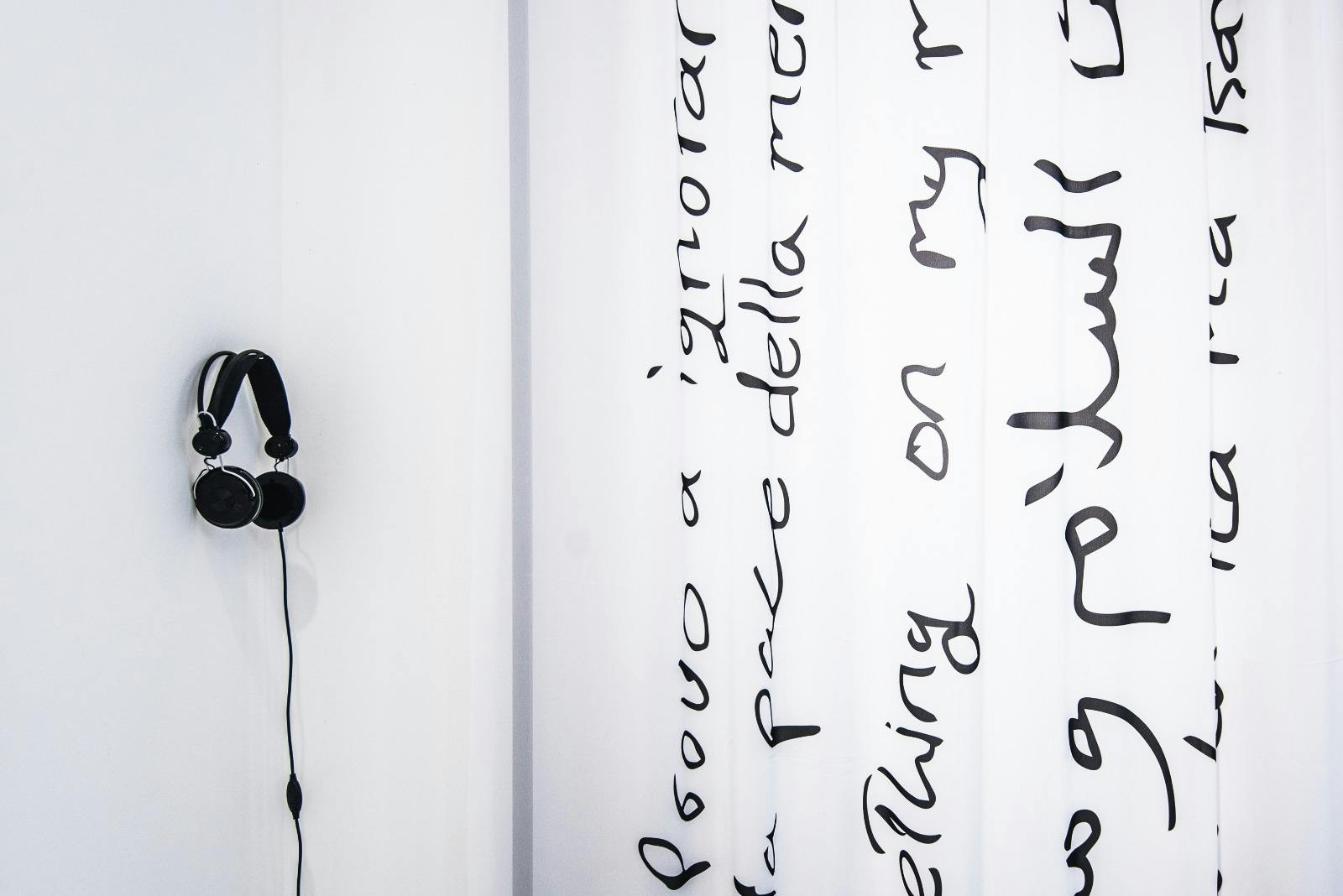 In the work, the artist handwrote some lines from the song, translating them into Mandinka and Italian, accompanied by an audio file that allows visitors to listen to the song through an MP3 player with headphones.