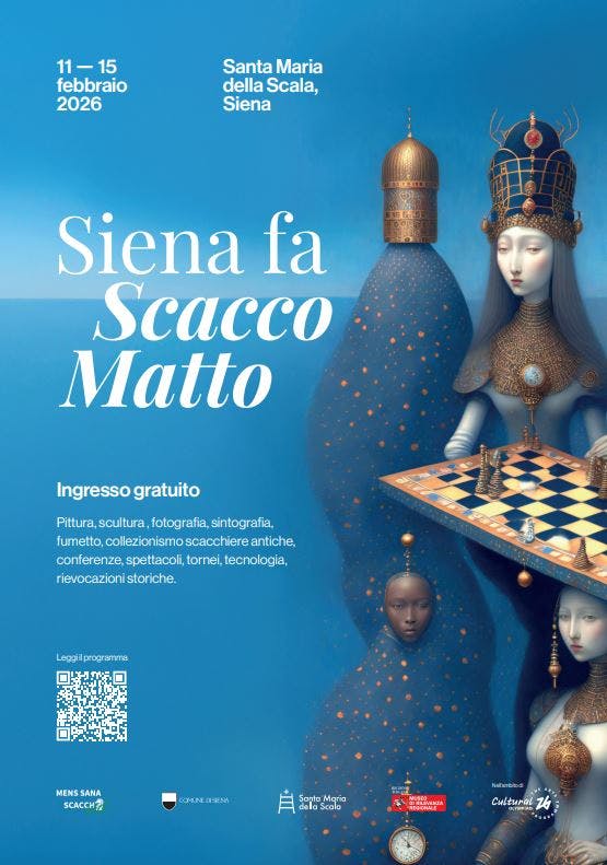 From February 11 to 15 the Santa Maria della Scala museum complex presents Siena Says Checkmate, a showcase that weaves together chess, culture, art and artificial intelligence, transforming the game into a lens on the present. Five days of events, tournaments, workshops and performances to present chess as a universal language capable of bringing together thought, creativity and society.
