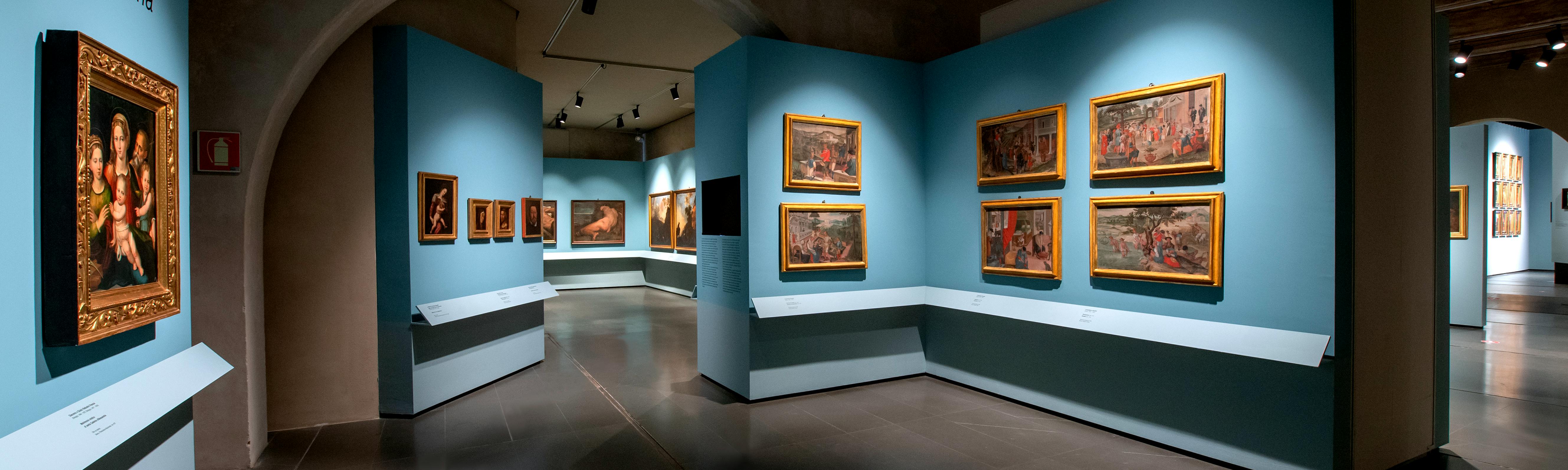 Officially established in 1774 following the marriage between Caterina Piccolomini di Modanella and Giuseppe Spannocchi, the collection is the result of three distinct nuclei and boasts a much older origin, whose history is intertwined with the great historical and political events that shook the whole of Europe during the seventeenth century. The first group of 60 paintings, including works by Lorenzo Lotto, Giovanni Battista Moroni, Sofonisba Anguissola and Albrecht Dürer, came from the famous ' celestial gallery ' of the Gonzaga family in Mantua, sacked in 1630 by the lanzichenecchi during the Thirty Years' War. Some of these paintings flowed into the collection of Lidovino Piccolomini di Modanella (1611-1680) before the mid-17th century, a Sienese nobleman and passionate collector of art objects. Lidovino created an important collection inside the Palazzo della Prepositura in Trento. Upon his death, the precious objects kept in the Palazzo della Prepositura were mostly transferred to Siena where those sent by Lidovino during his lifetime were already kept, forming the second core of the collection to which 65 works can be traced. The works finally flow into the dowry of Caterina, daughter of Antonio Piccolomini di Modanella with which the family branch dies out. Thanks to the marriage between the latter and Giuseppe Spannocchi, the Piccolomini collection joins the painting gallery of the groom's family, located in the Palazzo Spannocchi in via della Sapienza, which will constitute a third of the collection nuclei constituting the collection, represented here by 14 paintings. In 1835, the works were donated by the heirs to the Civic Community of Siena and then transferred to the local Gallery of Fine Arts. Divided between the Civic Museum and the National Art Gallery, the collection was the subject of a research project that led to its unification within the Santa Maria della Scala. Among the painters of Northern Italy there are, among others: Ludovico Dondi, Lorenzo Lotto, Correggio, Giovan Battista Moroni and Tintoretto; among the Northern European painters we remember: Alrecht Duerer, Rubens, and Albrecht Altdorfer; Sienese painting is documented by: Sodoma, Cristofano Rustici, Marco Pino and Giuseppe Nicola Nasini.