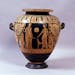 Stamnos etrusco a figure rosse, datato all’ultimo quarto del IV sec. a.C. Probabilmente di produzione vulcente, presenta su entrambi i lati figure femminili allungate, probabilmente menadi (per la presenza del cerbiatto) o donne intente alla toilette.